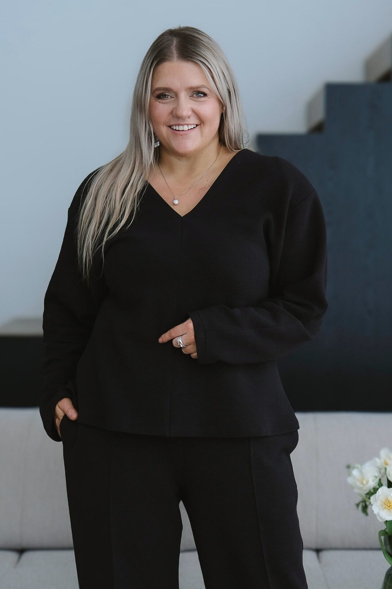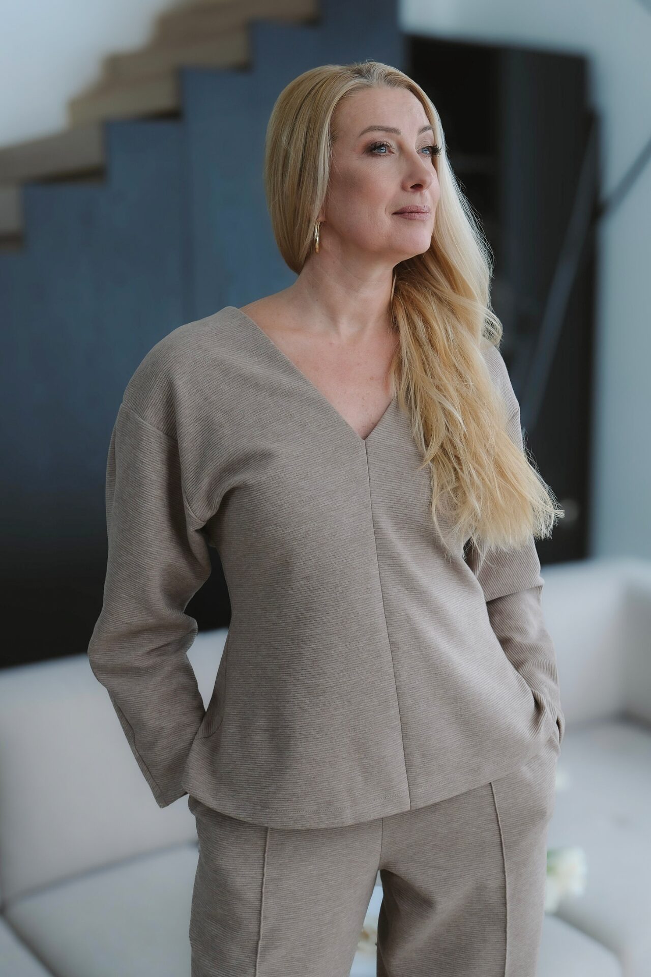 Pluusil on naiselik ja kergelt taljesse töödeldud lõige, mis rõhutab pihta, säilitades samal ajal kandmismugavuse. V-kaelus sobib erinevatele kehatüüpidele ning loob elegantse ja ajatu silueti.