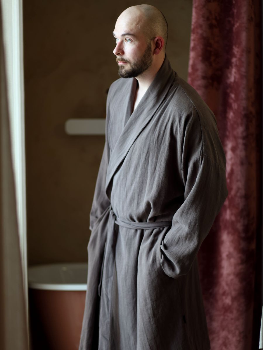 Kivipestud lina on eelnevalt töödeldud, mis tähendab, et kangas ei tõmbu hilisemas pesus enam märgatavalt kokku. Õige hoolduse korral säilitab hommikumantel oma kuju ja istuvuse.