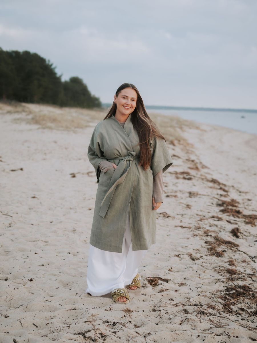 Haruu linane pikk kimono on rõivaese, mille järele haarad ikka ja jälle. Mugav, elegantne ja stiilne.