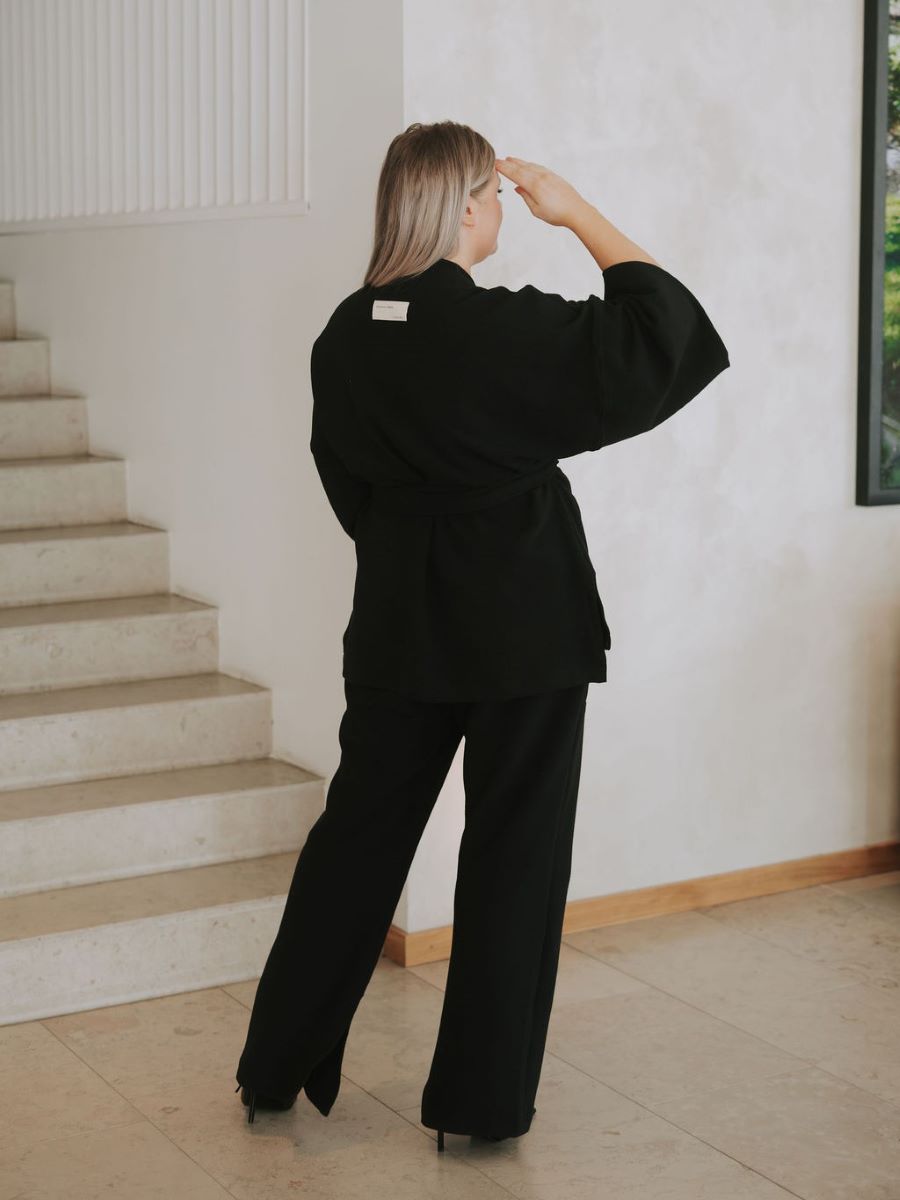 Ei. Kuigi püksid on loodud sobituma sama kollektsiooni pusa ja kimono-jakiga, saab neid väga hästi kombineerida ka teiste garderoobiesemetega, näiteks t-särgi, kampsuni või bleiseriga.